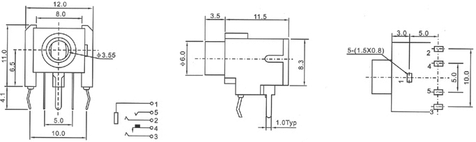 接觸電阻 Contact Resistance ≤0.03Ω 壽命 Life 5000次