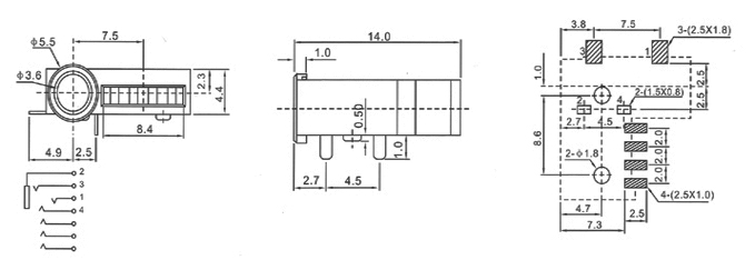 接觸電阻 Contact Resistance ≤0.03Ω 壽命 Life 5000次