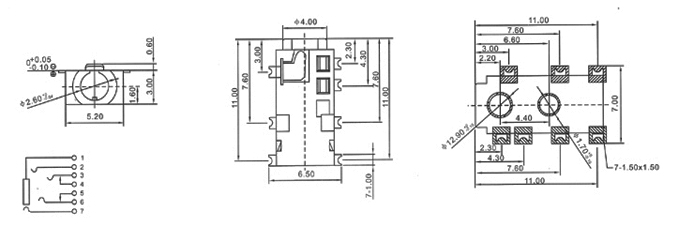 接觸電阻 Contact Resistance ≤0.03Ω 壽命 Life 5000次